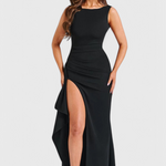 Diseñado para cautivar, el Vestido de Noche Marion es todo sobre la sofisticación elegante. Con su silueta ajustada, acabado de satén lujoso y dramática espalda abierta, este vestido de largo completo es la elección definitiva para hacer una entrada. La alta renda añade movimiento y atractivo, haciéndolo perfecto para galas, noches formales y momentos en la alfombra roja.