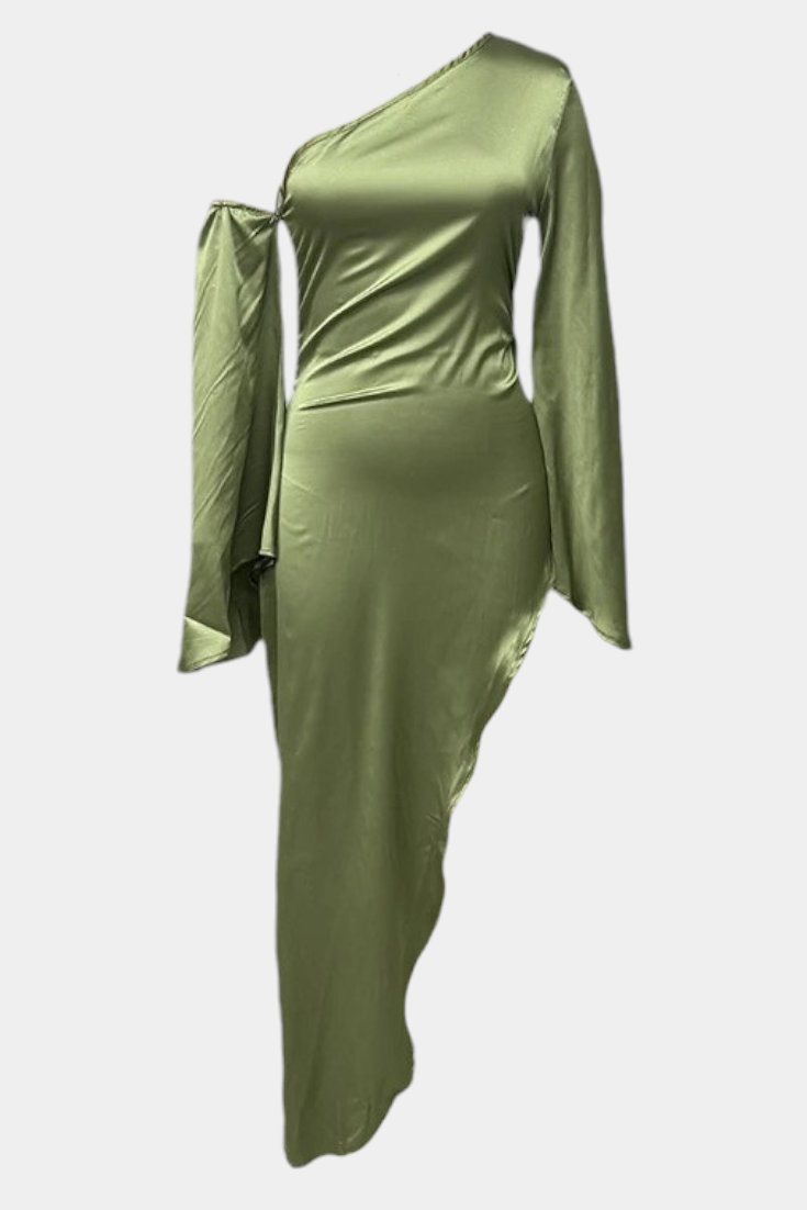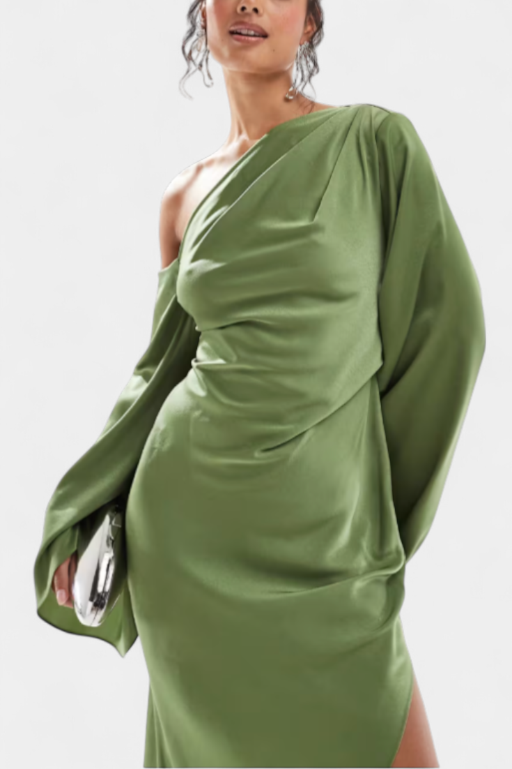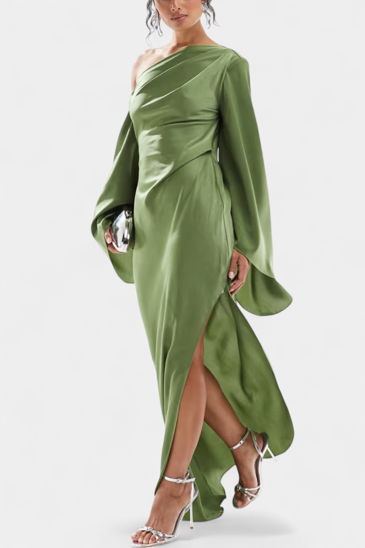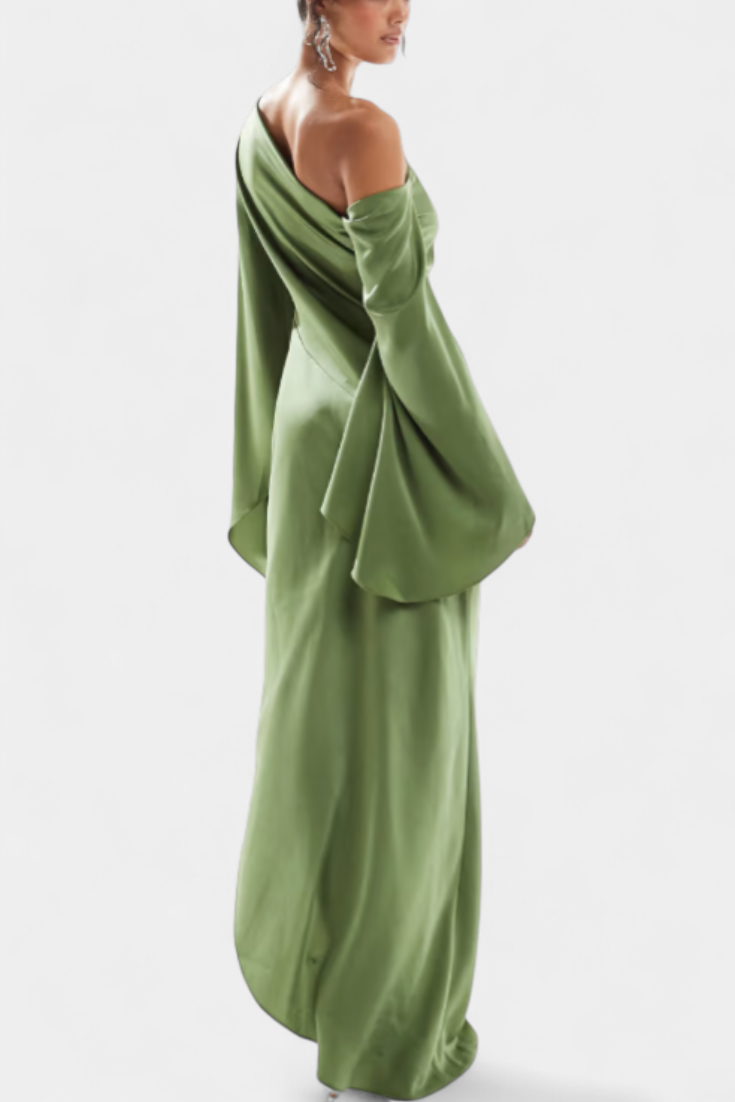 Vestido Maxi Asimétrico de Un Hombro Keisha con Cintura Esculpida